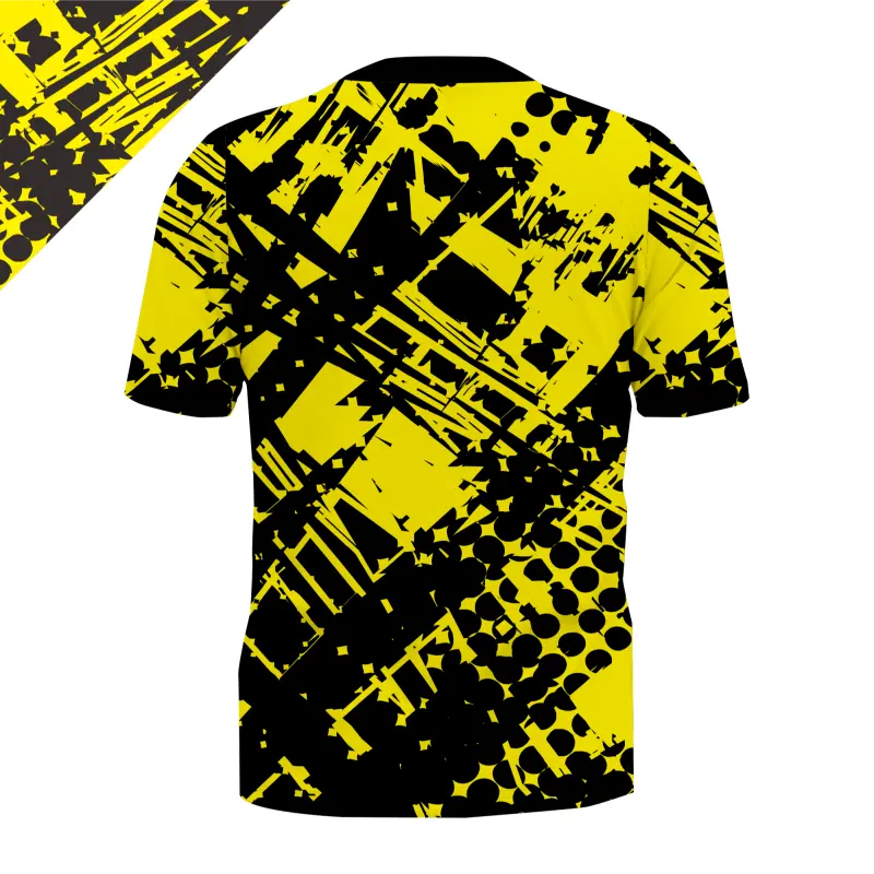• Desain Eksklusif: Motif abstrak distressed dengan perpaduan warna kuning dan hitam yang tajam dan ikonik.